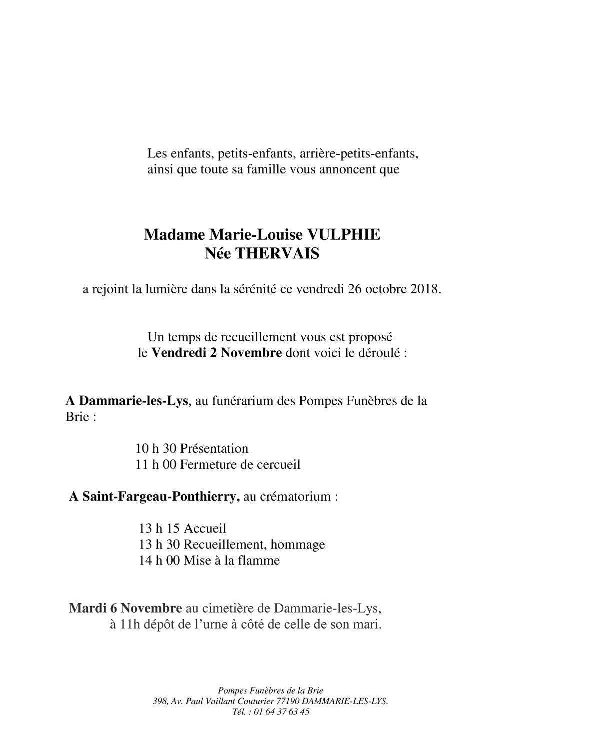 Veuve de Monsieur Gerard VULPHIE