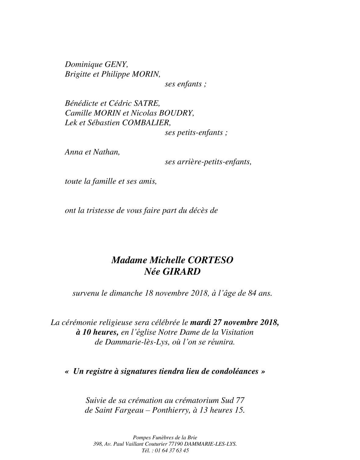 Madame Michelle CORTESO née GIRARD