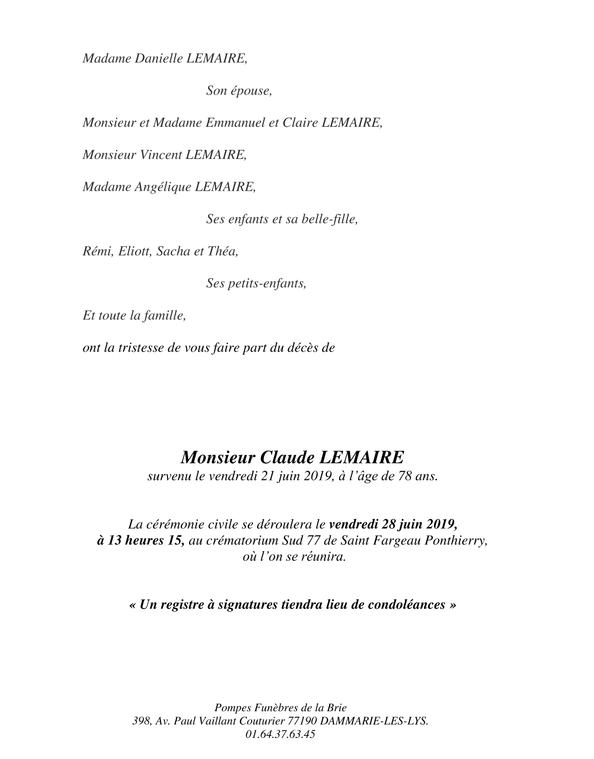 Né à Melun (77000, France) le mercredi 19 février 1941
