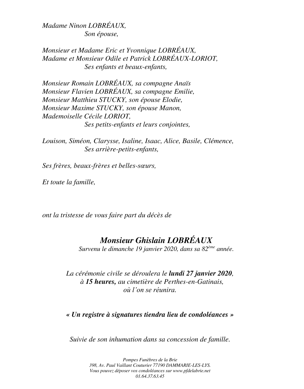 Décédé à Brie-Comte-Robert (77170, France) le dimanche 19 janvier 2020 à l'âge de 81 ans