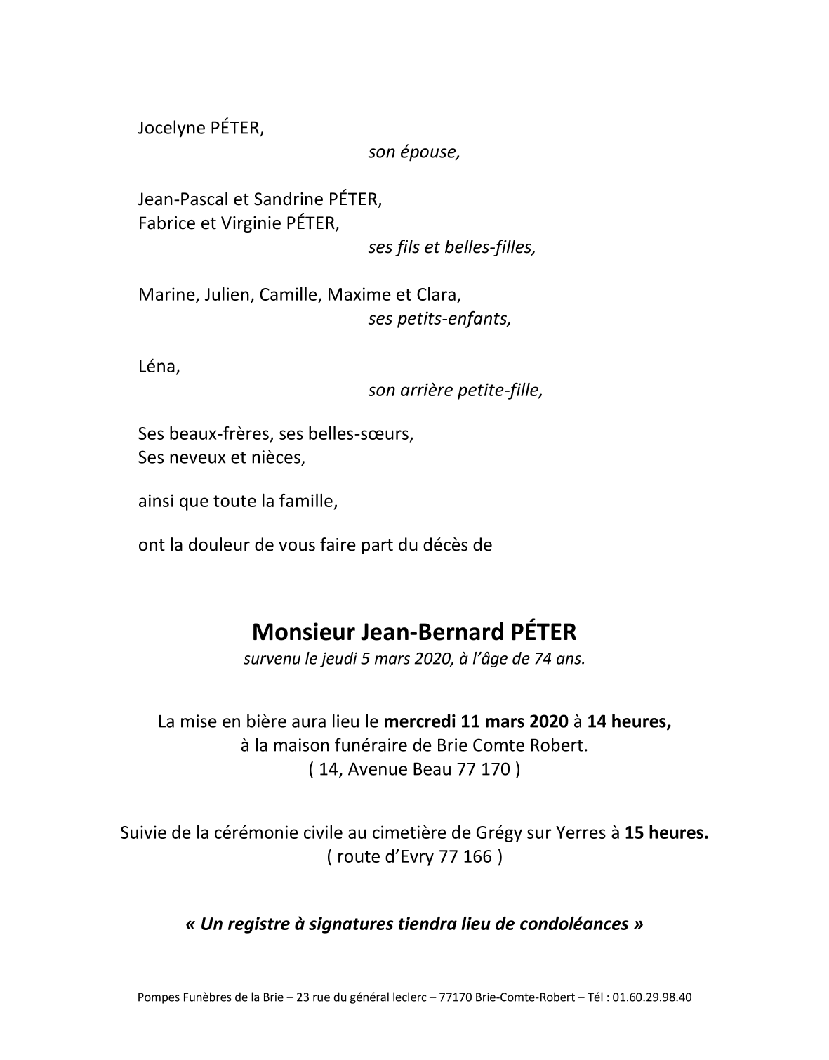 Monsieur Bernard-Jean PÉTER