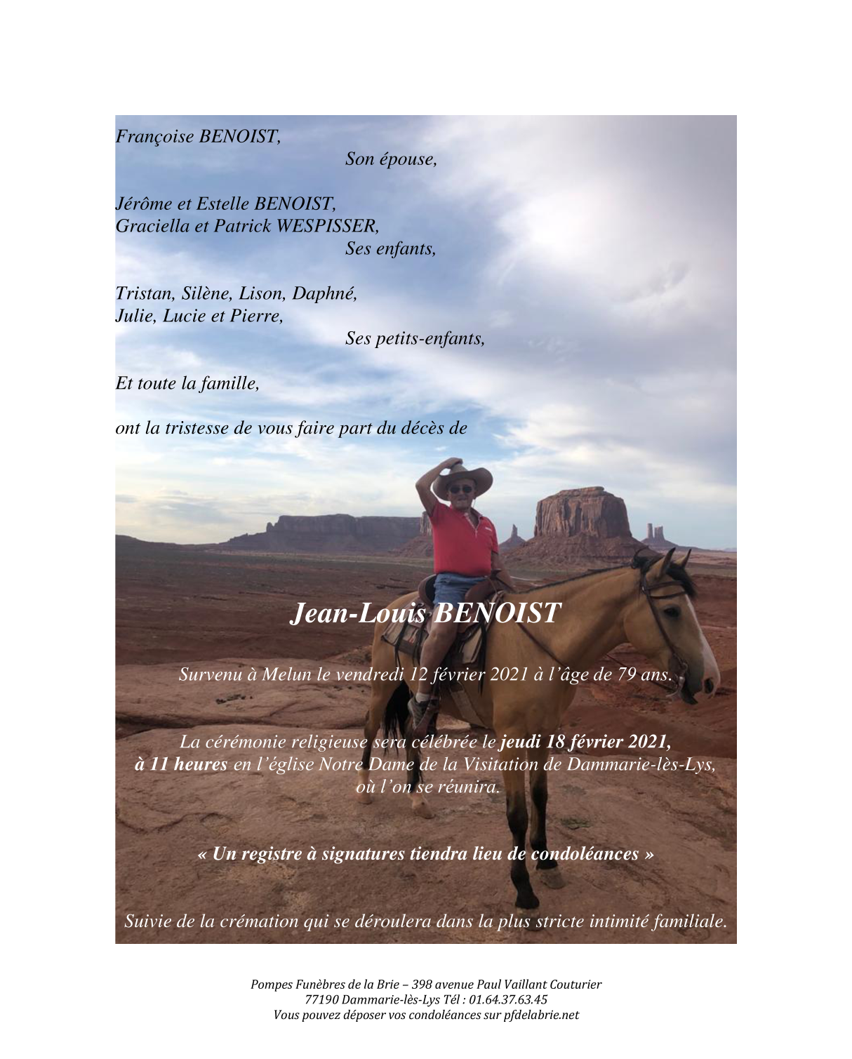 Décédé à Melun (77000, France) le vendredi 12 février 2021 à l'âge de 79 ans