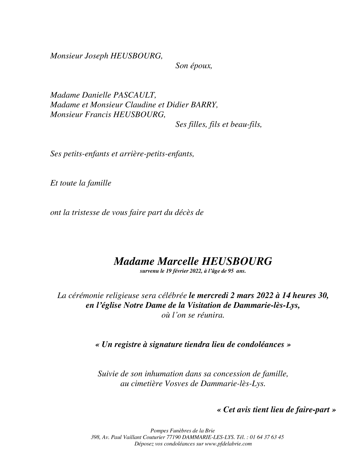 Madame Marcelle HEUSBOURG née LAPOINTE