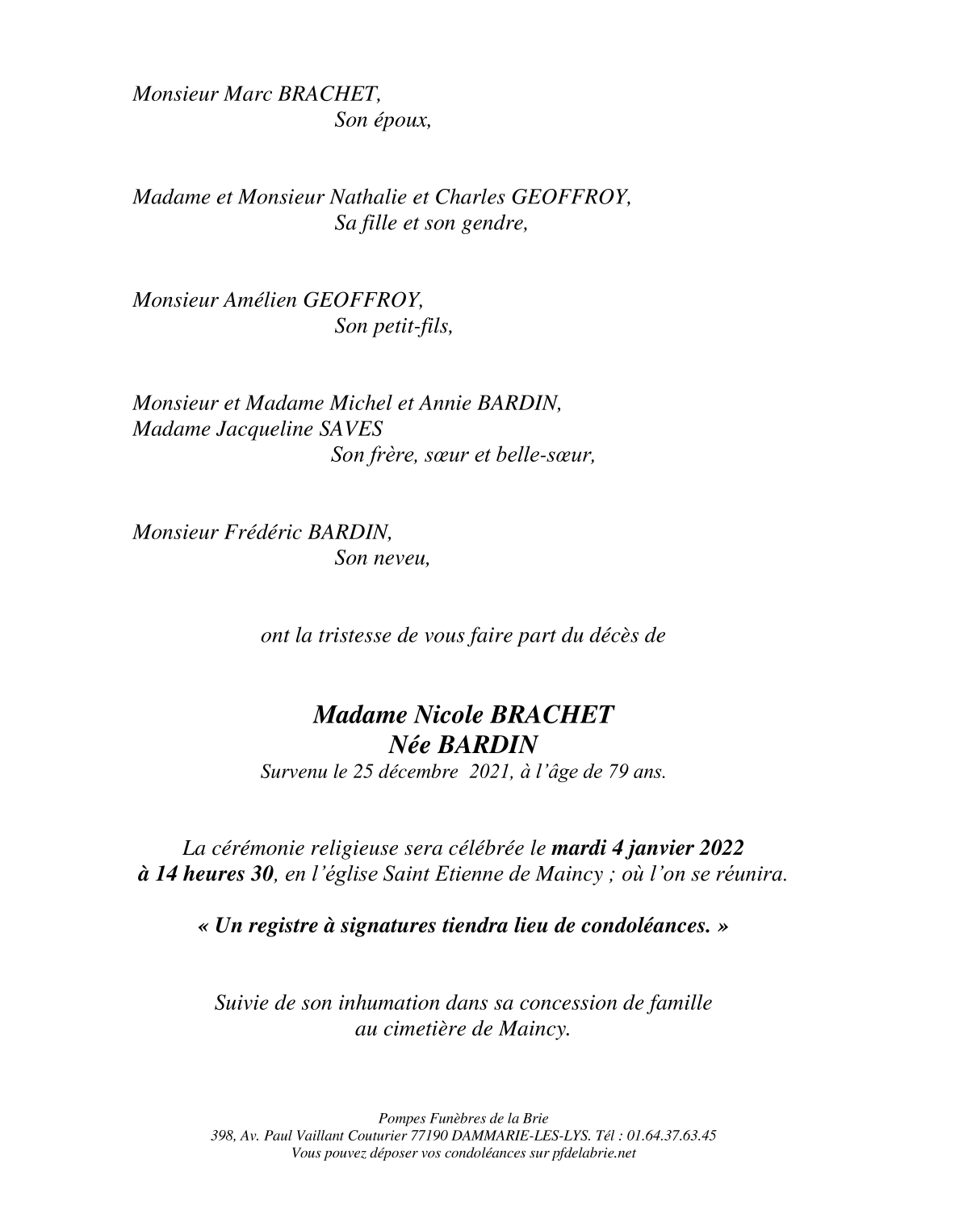 Décédée à Melun (77000, France) le samedi 25 décembre 2021 à l'âge de 79 ans