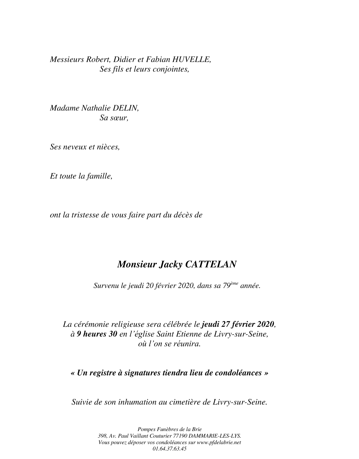 Décédé à Melun (77000, France) le jeudi 20 février 2020 à l'âge de 78 ans