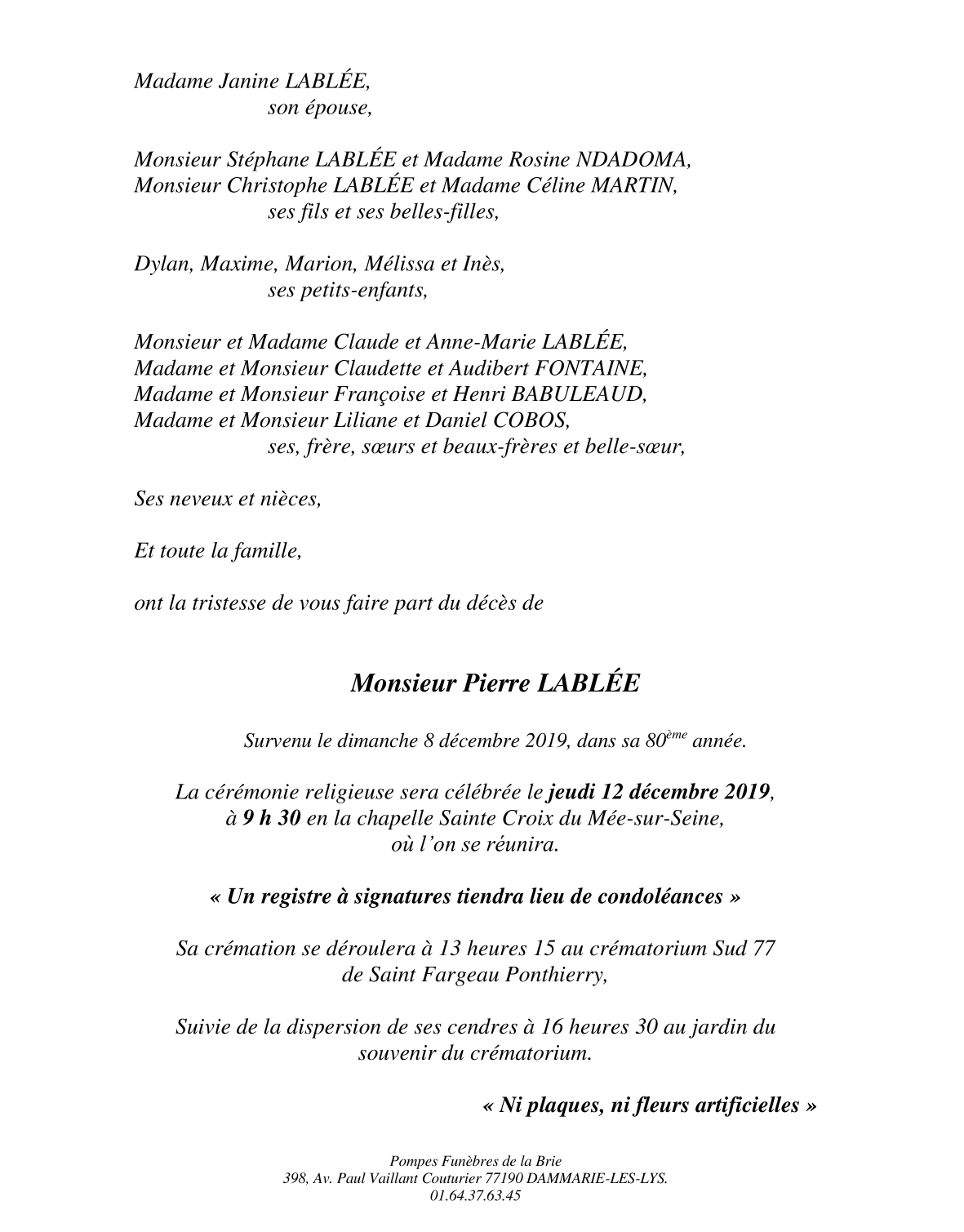 Décédé à Ballainvilliers (91160, France) le dimanche 8 décembre 2019 à l'âge de 79 ans