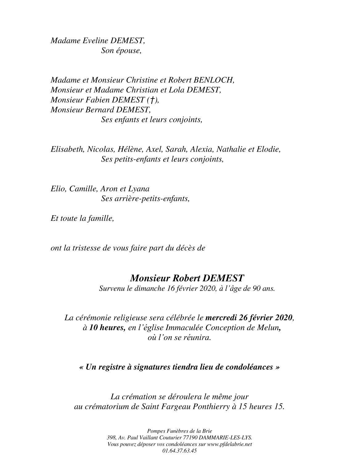 Décédé à Corbeil-Essonnes (91100, France) le dimanche 16 février 2020 à l'âge de 90 ans